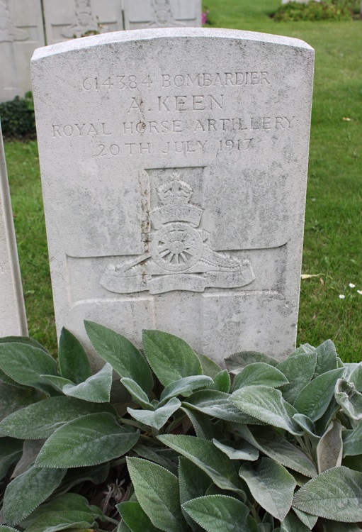 Arthur is listed as being killed in action on 20 Jul 1917 when the farm building he was billeting in took a direct hit from an enemy shell. The war diary entry for that day [WO 95 2854/7] is transcribed below. Trois Tours - In the field - 20.7.17: 2 inch fired 410 rounds on enemy front system, only about 30 yards of wire left in this sector. Billet hit by enemy shell causing 15 OR to be killed & 28 OR to be wounded. All casualties with the exception of 2 OR belonging to 126 A.F.A Bde. |