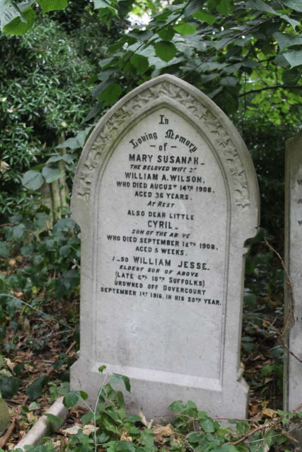 Numerous newspapers reported on 4 Sep 1916 that on 1 Sep 1916 "Corporal William Jesse Wilson of Welford drowned whilst bathing in the sea off Dovercourt nr Harwich in Essex. A Naval officer attempted to rescue him but failed".