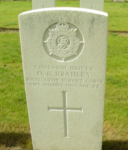 DEATH OF ANOTHER SHIPSTON SOLDIER - Mrs O. Bradley of Stratford Road has received the news that her eldest son Driver O. G. Bradley ASC has been killed in France. Driver Bradley who was only 21 at the time of his death volunteered in 1914 and he was a keen soldier, greatly respected and highly popular with both his officers and comrades, as several letters received by his mother testify. He was killed by shrapnel, death being instantaneous. The deepest sympathy is felt for Mrs Bradley and his other relatives.