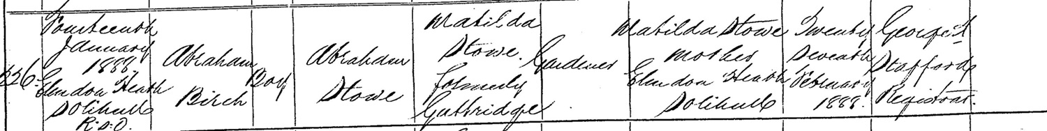 - Abraham was known by his middle name of Birch, including in the 1901 Census