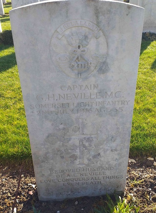 George (Harry) is listed as being missing believed killed on 2 Jul 1916, however the 1st Battalion War Diary and below book extract reveal he was reported missing believed killed before 10.30pm on 1 Jul 1916. The following description of events is taken from the book History of the Somerset Light Infantry (Prince Albert's) 1914-1919 by Everard Wyrall and published by Lune Books (Buy it Here). Preparations for the Attack"The 1st Battalion (Lieut.-Col. J. A. Thicknesse) had marched out of Mailly Maillet at 10 p.m. on the previous night to take up positions in the assembly trenches. The Brigade, with the exception of the Bde.T.M.Bs., Bde. M.G. Coy. and Bde. carriers, marched to the assembly trenches in two columns — the Somersets being included in the right column — which moved forward in the following order: 2 Coys. E. Lancs, Somerset L.I., Hampshire Regt. From the starting points all Battalions marched across country; casualties were very small during the “move up.” The 11th Brigade had been ordered to attack with three battalions in the front line and three in support; the 10th and 12th Brigades were to continue the attack through the 11th. Of the latter, the East Lancs R., Rifle Brigade and 8th Warwicks (in the order given from right to left) formed the front line; the Hampshires, Somerset L.I. and 6th Warwicks (also from right to left) were in close support. Battalions were to advance on a frontage of one company. The three first Battalions had been ordered to assault, capture and consolidate the line Q.5.C.8.9.-K.35.C.6. .-K. 6.0.5., upon which the three supporting Battalions were to advance through the. leading Battalions and in the same way assault, capture and consolidate the final objective of the Brigade — the line Q.6.C.5. . (inclusive)-Q.6.a. .9-K. 6.a.8. . inclusive. The AttackAt 7.0 a.m. there was a roar as a huge mine under Hawthorn Redoubt, south of Beaumont Hamel, exploded. This mine was stated to have been the largest fired during the War: it was 80 feet below the surface and contained 20 ¼ tons of explosive. Ten minutes later the advance began: “The 11th Brigade advanced in magnificent style,” records the Diary of the 1st Somersets: the latter in four lines as follows: 1st line, 2 platoons of A Company on right, 2 of B on left: 2nd line, 2 platoons of A Coy. on right, 2 of B on left; 3rd line, 2 platoons of C Coy. on right, 2 of H on left: 4th line, 2 platoons of C Coy. on right, 2 of H on left. At the outset the advance was carried out in excellent style and an officer of the 1st Battalion said: “The sight was magnificent, line after line of men advancing at a slow trot towards the German line with hundreds of shells, ours for the most part, bursting behind the German line.” With but little loss the attacking lines on the left and centre advanced to the first objective. On the right flank, however, heavy machine-gun fire swept the ranks of the East Lancashires and Hampshires, and these two Battalions were unable to get beyond the enemy’s wire. The Somerset men, owing to the ridge which they should have crossed being swept by machine-gun fire, had to ease off to the left, and the Battalion found itself in the German trenches in the neighbourhood of the Quadrilateral. The Warwicks gained their objective but were unable to hold on. From this point onwards all is confusion. The Battalion Diary states that “it is impossible to get a detailed account of the fighting that ensued, but the situation after the first hour or two was that men of various battalions in the Division were holding part of the Quadrilateral and were engaged in a fierce grenade fight. Our men were for some time severely handicapped by shortage of grenades, but these were afterwards sent up.” Desperate fighting, indeed, went on in the German first and second lines throughout the day. Unfortunately some of the German front-line trenches which had been captured were not properly cleared of their defenders, who hid themselves in their deep dug-outs until the British troops had passed on towards the second line. The crafty Germans then came out of their first-line dug-outs and, mounting their machine guns and using their rifles, shot down the advancing British troops from behind; hundreds of men were lost in this way. The Aftermath of the AttackHeavy casualties were also suffered by all battalions from enfilade machine-gun and rifle fire from both flanks. For the 29th Division, on the right, had failed to take Beaumont Hamel, while the 31st Division, on the left, who had to form a defensive flank through Serre, had similarly failed to reach and hold its objectives. Thus the 11th Brigade of the 4th Division was out in a salient with both flanks “in the air.” Only two officers (Capt. Harington and Lieut. Greatham) now remained with the Somerset men, who with other troops were holding a part of the Quadrilateral. But about 1.30 p.m both these officers, having been wounded, went back to have their wounds dressed and the command of men of the Battalion in the Quadrilateral devolved upon C.S.M. Chappell. About 4.30 p.m. Major Majendie arrived with reinforcement officers and took command of the Battalion which had been collected together in assembly trenches by R.S.M. Paul. After dark troops of the 11th Brigade, holding portions of the German trenches, were relieved by Royal Irish Fusiliers and withdrew to the old British line and, at 10 p.m., the Brigade was ordered to return to Mailly Maillet as Divisional Reserve; the 10th and 12th Brigades to hold the front line. This sums up very briefly the operations of the 1st Somerset L.I. on the first day of the Somme Battles. |