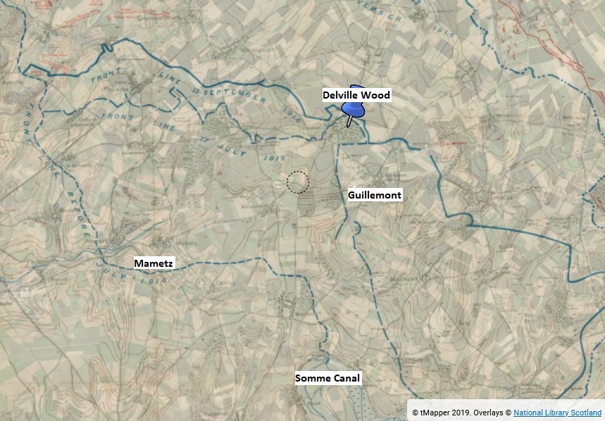 It is not known for certain on what day Arthur was wounded but the most likely is the 24th or 25th August 1916 when the battalion were in the front lines at Delville Wood and suffered 76 wounded other ranks in fighting with the enemy. He was taken to either the 36th, 38th or 2nd/2nd London Casualty Clearing Station which all used Heilly Station for their burials.Personal & Family History |