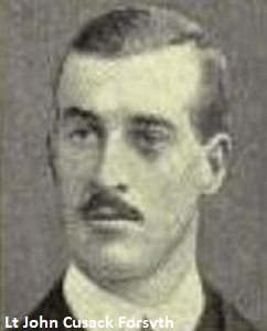 "Very quiet day - Lt Forsyth (Adjt) killed". A newspaper reported that he was shot in the head whilst dismounting from his horse.