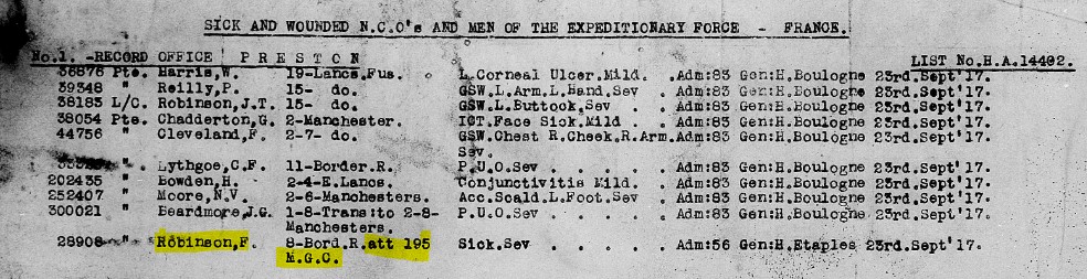 It is noted that the Etaples Admission record shows Frank as being attached to the 195th Machine Gun Company, the only such reference we have seen.