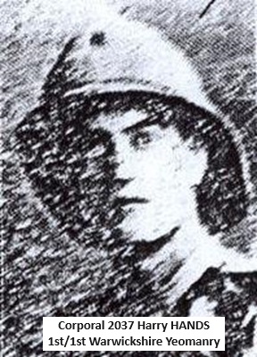 Charles' service number was 2037 which means that he enlisted in the Warwickshire Yeomanry during the eight day period between 25th Oct 1913 when 2036 was to issued to Pte G. MILWARD & the 1st Nov 1913 when # 2038 was issued to Pte T. Cooke. Harry's arrival date in threatre of 24 Apr 1915 means that he arrived onboard H.M.T. Saturnia and therefore, contrary to the Warwickshire Roll of Honour, he was not onboard H.M.T. Wayfarer when it was struck by a torpedo fired by German U Boat U32 60 miles NW of the Isles of Scilly. Harry was not part of the 1st/1st contingent at Gallipoli and was most likely, given his role as a Shoeing Smith, part of the composite Regiment that remained behind in the western desert with the horses of the 1st/1st who were serving as unmounted infantry at Gallipoli. Our thanks to the Warwickshire Yeomanry Museum for the information above. |