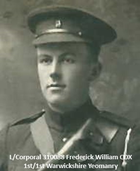 Frederick was wounded at El Arish and died of those wounds on 20 Apr 1917 (Hon. H. A. Adderley's book The Warwickshire Yeomanry in the Great War). More to follow (as of 12/5/2024)