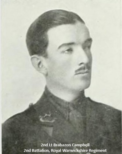 2nd Lt Campbell is listed as being killed in action on 18 Dec 1914, from the 2nd Battalion war diary it is clear that he was killed during an assault on an enemy machine gun post. The complete war diary entry is transcribed below. December 18th 1914: "The Bn was ordered to advance in 3 lines at 4.30 pm to attack and take the Germans Trenches which were in front of Le MAISNIL. The attack was proceeded by a heavy artillery bombardment by our artillery to which the enemy made hardly any reply. Attack was started by "B" Company on the right led by Capt Haddon, advancing in 2 lines: A Co advanced on the left in 2 lines with D Coy in the centre. C Coy formed the third line with entrenching tools. A Machine Gun was on each flank. Immediately the attack opened, the enemy opened a very heavy rifle & machine gun fire. The Battalion advanced under this with steadiness, suffering very heavy casualties. The 2/Queens sent 1 1/2 companies in support & although our dead were found only a few yards from the German trenches, the attack failed in its objective. What remained of the Bn subsequently retired into our trenches. Shortly After daylight the enemy came out & started examining our dead. Parties went out fr. our lines & buried some of the officers & collected discs from some of the killed. Owing to 2 officers of the Queens & several small parties of the Bn, when engaged in carrying our wounded into the enemy's lines, (the enemy refusing to allow us to remove our wounded) being made prisoners, & also owing to Lt Bover S.Staffords being killed while helping to collect our wounded, the informal armistice terminated Lt Col Brewis was found killed about 40 yards from the enemys line. Capt. Brownfield, Lts. Monk, Tucker, Campbell & Birt (attached R.E) together with 34 men were found a few yards from a German Machine gun. From evidence available, it is apparent that Capt Brownfield though previously wounded continued to lead the attack on the Gun. Other ranks casualties - 57 Killed, 87 wounded, 219 missing". Also killed during this action were Private 1765 Alfred OVERS of Harbury and Private 1959 Edwin WELLINGS of Southam |