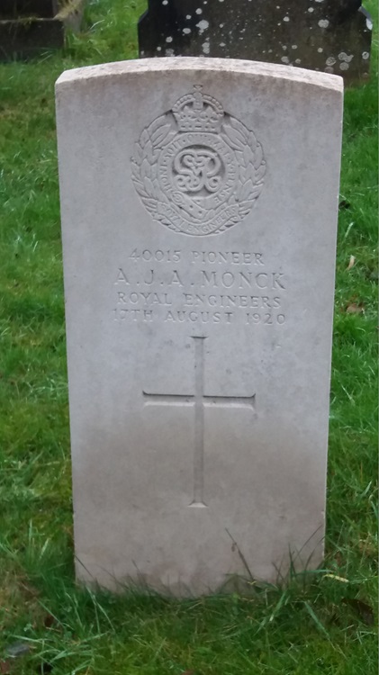 DEATH OF MR. AYLMER MONCK - We regret to announce the death of Mr. A.A. Monck of 27 Victoria Street which occured early on Wednesday morning after an illness extending over ten months. The late Mr. Monck, who was 26, enlisted for war service in 1914 [12 Aug 1914] being one of the first of Messrs Alfred Herberts apprentices to respond to Lord Kitcheners appeal for recruits, and was a Sapper in a Signal Co of the Royal Engineers.