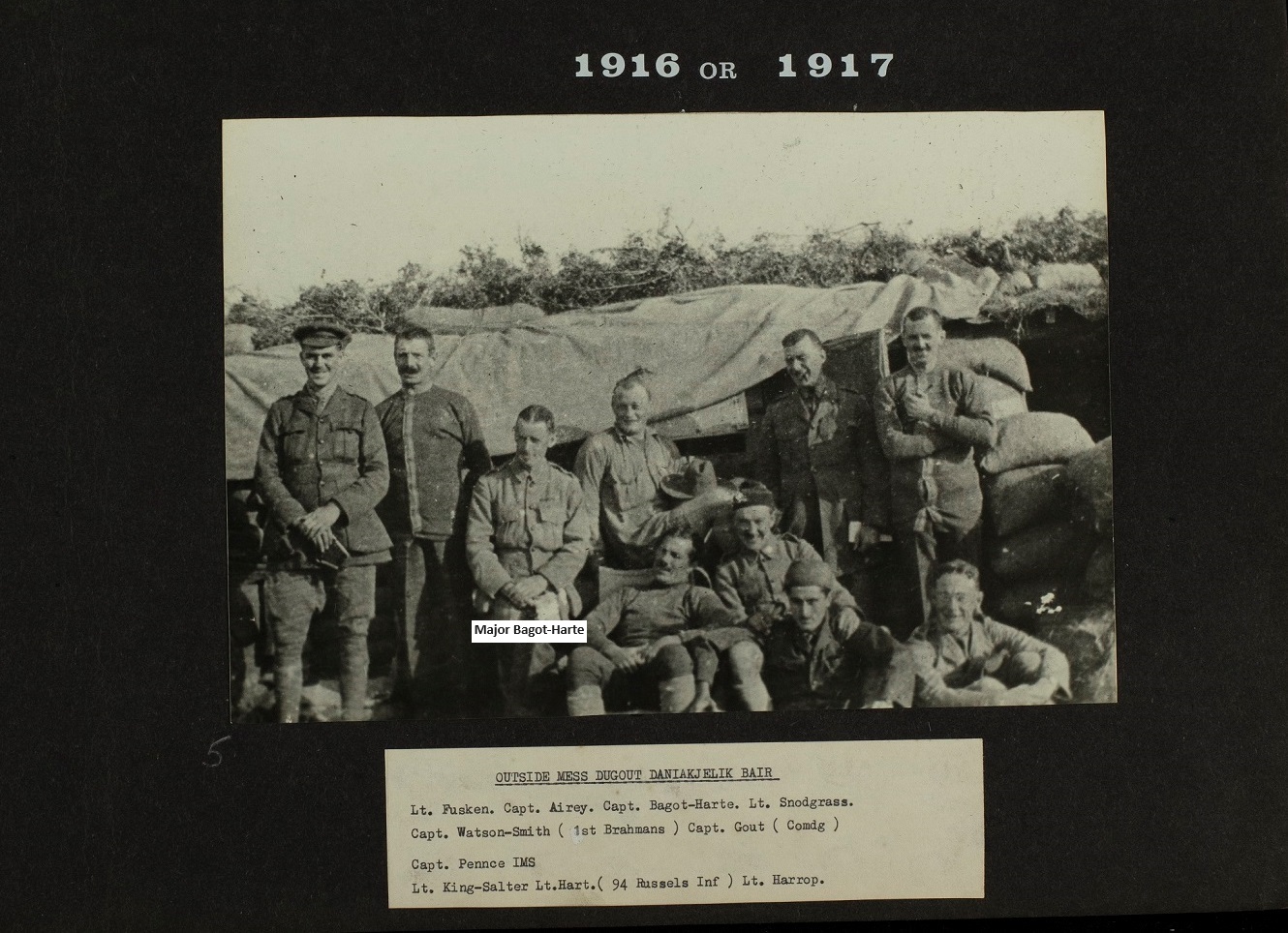 Irvine is listed as being killed in action on 21 Jun 1917. War Diaries for the Indian Campaign are not available. Research shows that on the day he was killed Major Harte was the supervising officer of the Mahindradal Regiment at Nanu Pass, Waziristan, where Indian and British forces were fighting the Mahsud, a Pashtun tribe, on the North-West Frontier. The British and Indian troops attacked, and captured, the Nanu Pass. During the fighting on the left flank Maj Harte was killed and 45 other ranks killed or wounded. |