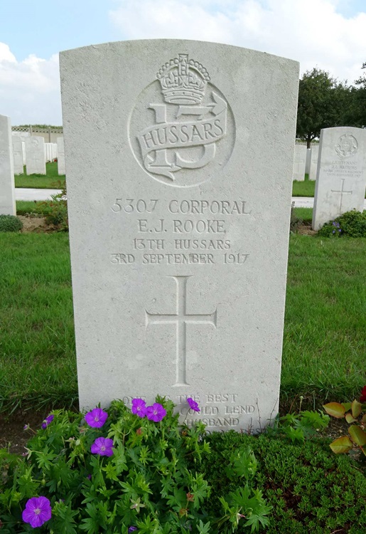 Ernest died on 3 Sep 1917 when he accidentally drowned in the Canal d'Aire a la Bassee. The war diary places Ernest and the Royal Horse Guards in a camp at Boeseghem very close to the Canal d'Aire a la Bassee and no mention is made of casualties. A newspaper cutting states that Ernest went in search of a Corporal of his troop and was not seen for 5 days until his body was found in the canal in which he drowned. The diary does not mention any missing men for the whole of August to it has not been possible to identify who Ernest was looking for. |