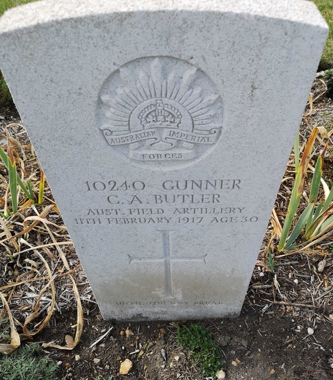 Clement is listed as dying of his wounds on 11 Feb 1917. A report in the Warwick Advertiser and medical notes in his service record reveal that: On 9 Feb 1917 the 5th Brigade Australian Field Artillery were in the lines at Martinpuich and were under constant shellfire when Clement was wounded in the abdomen, legs and arms at which time he was admitted to 5th Australian Field Ambualance On 10 Feb 1917 he was transferred and admitted to the 11th Stationary Hospital at Rouen by which time the wounds had become badly infected. Clement died there from those wounds at 1am on the 11th Feb 1917. The war diary entries for the 5th Brigade, Australian Field Artillery for the 8th and 9th February are transcribed below: 8.2.17 - Martinpuich: During the night Lufont Wood, Loos Cut and various tracks etc were subjected to bursts of fire. Martinpuich, Le Sars and Destremont Farm shelled by 15cm Howitzers during the day. Enemy planes active. 9.2.17 - Martinpuich: Usual enemy approaches, Headquarters etc were kept under fire. Considerable movement noticed and engaged. END |