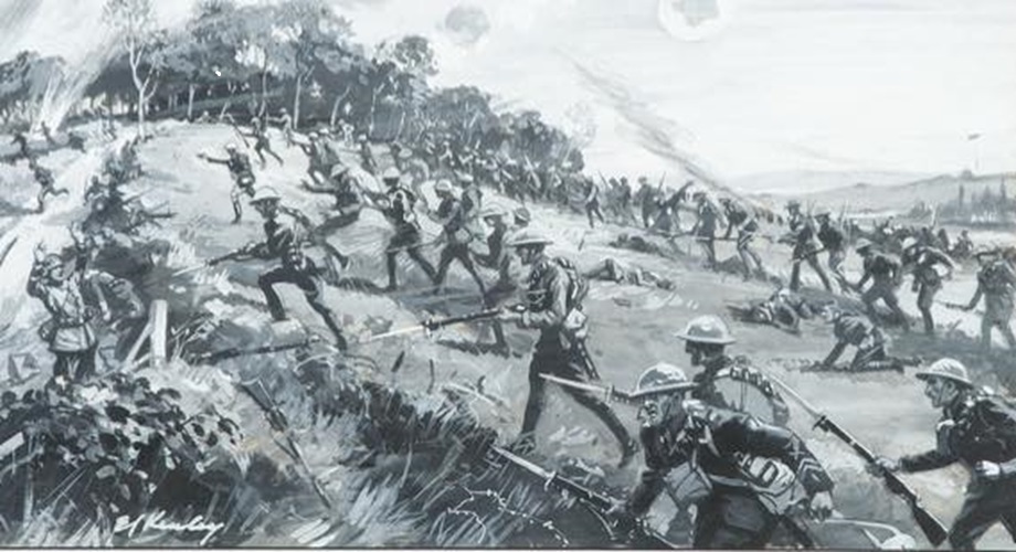 One observer wrote, ‘It was a wonderful sight to see the waves go forward.’ Led by the 3rd Hussars and the Oxford Hussars, the steady lines of men swept up the cover-less, grassy ridge, bayonets glinting in the pale sunshine, never pausing as the enemy machine-guns tore savagely at their ranks. During fourteen minutes of silent agony, not a shot was fired by the attackers, until they reached the top of the slope: then, all hell broke loose as the Germans turned and ran from the hail of bullets and the lunging bayonets. As successive waves of the 4th, 5th and Canadian Brigades passed through to their objectives, the enemy were everywhere driven from their positions, and by 3 o’clock in the afternoon, the battle was won. The next day, the 2nd of April, when the 3rd Hussars were relieved, they carried their dead and wounded down from Rifle Wood, among them the body of their young adjutant, Lieutenant Dilberoglue. Of the 103 officers and men of the regiment who had formed the leading wave, barely half were unscathed; but they earned eight immediate awards for their gallantry, and they had proved they were worthy descendants of ‘The Devil’s Children’. |