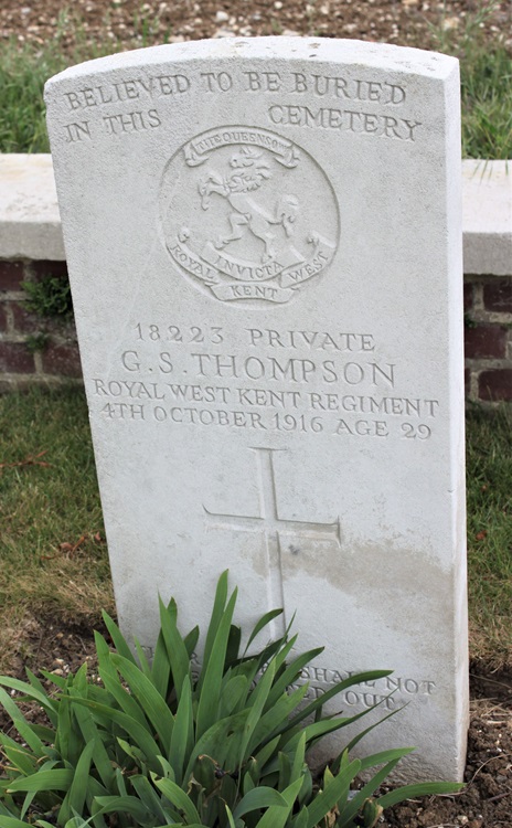 George is listed as being killed in action on 4th October 1916. The 7th Battalion war diary entries for the period 3rd to 5th of October are transcribed below. Schwaben Redoubt – 3rd Oct 1916: At dawn the Germans again attacked B Coy between Points 16 and 45 but were driven off. The whole line was subjected to heavy shelling during the day. 8pm: A working party of 8th E Surrey Regt came up and deepened the front line trench from Points 86 to 22. 12mn: 2nd Lt Chant with one platoon of 7th Buffs took over a portion of our line held by A Coy on the right. Schwaben Redoubt – 4th Oct 1916: The whole line subjected to heavy shelling during the day. About 6pm enemy again attacked from Point 16 but were driven off. Lt. Hackett killed by hostile shell fire. Schwaben Redoubt – 5th Oct 1916: During the night 4th/5th officers of various units arrived at our HQ and hinted vaguely at an attack to clear the Schwaben by the 8th Norfolk to be carried out in the morning. No notification was ever received by the Battalion of this attack. It, however, took place and appeared to be at first successful, as our Lewis guns obtained a number of excellent targets against Germans retiring across the open, but a determined enemy counter-attack appears to have neutralised the initial success. |
