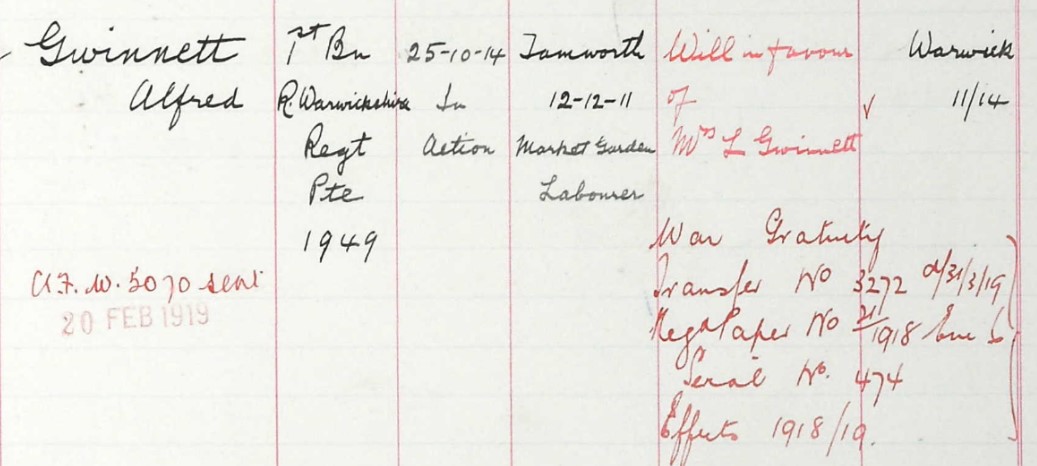 1911 - Not found | 1911 - Soldier in Royal Warwickshire Regt |