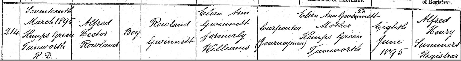17 March 1895 in Kemps Green, Knowle (Birth Cert) | |