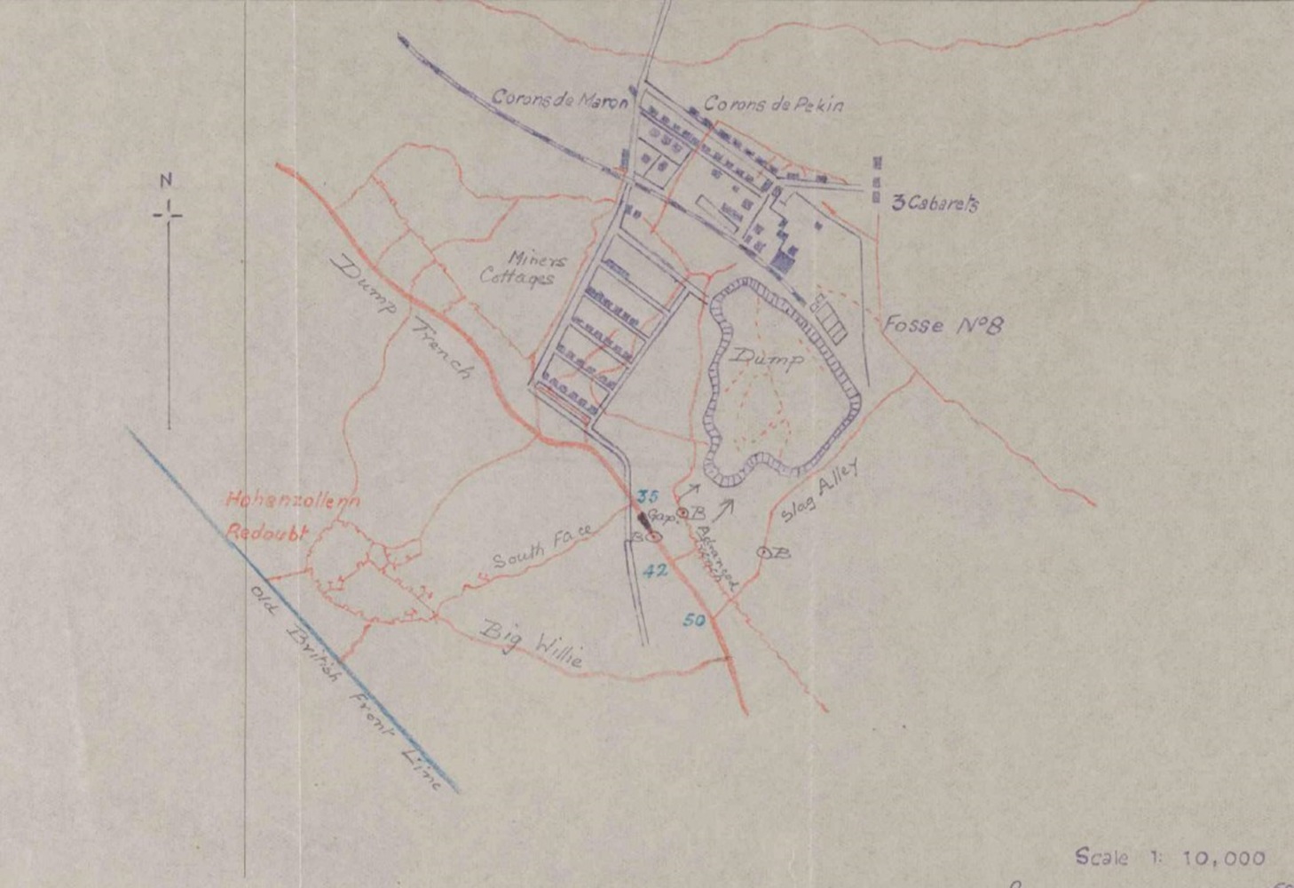 George is listed as being killed in action on 28th September 1915 during the Battle of Loos. The following description of the events for the 27th to 29th come courtesty of MIchael, a user on the Great War Forum. Forming Up for the AttackThe following description of the part the battalion played in the struggle would be somewhat difficult to follow without the accompanying sketch of the ground about the Hohenzollern Redoubt and the Dump.