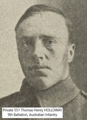 Private 551 Thomas Henry HOLLOWAY - 9th Battalion, Australian Infantry