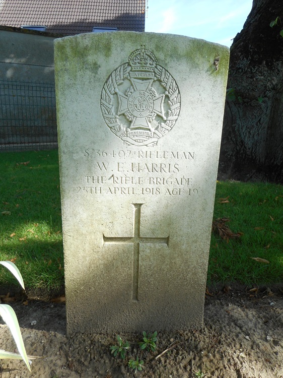 Wilfred is listed as dying of wounds on 25th April 1918 at the 25th Field Ambulance which inevitably means that he died soon after being wounded. The 2nd/10th Battalion war diary for 24th/25th April is transcribed below. Haugard Sector - Apr 24th: After most intensive bombardment which the enemy put down at 4am, enemy attacked on Haugard Sector at 6am. This Battn was counter attack Bn for 173rd Brigade. Battn was immediately formed up in the counter attack positions. At 7.30am a report was received that left Bn of 173 Brigade front line had been compelled to yield ground. One Company was disposed to form a defensive flank. Before ordering counter attack the CO, Lt. Col Symonds DSO personally reconnoitred towards Haugard Wood. He was shot by a sniper. Badly wounded he was got in and evacuated. Capt F Goves took command of the Battalion. Orders were given for the counter attack at 10.30am but attack was held up by heavy M.G. fire from Haugard Wood and men had to dig in after going 200 yards. Two companies were ordered to reinforce 173 Bde front line. At 5pm 9th London’s took over our dispositions as Counter Attack Battn. All night elements of the Bn were held in reserve to 9th London & 54 Inf Bde who counter attacked. A big gap formed in our line on right of 9th London & a Coy & half were sent up & filled this gap. 2/Lt Martin wounded Apr 25th – Haugard Sector: Dispositions of previous night maintained. Lt Col Symonds died in CCS. Bn relieved on night of 25th/26th Apr by 12th Londons & troops of units of 174 Brigade. |