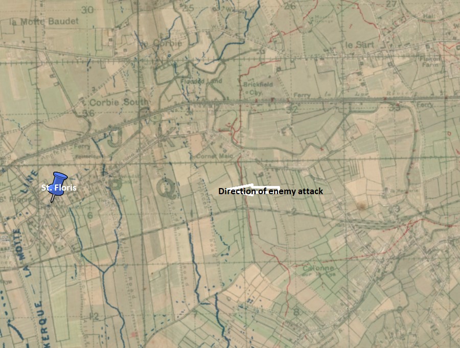 The battalion were in the lines at St. Floris when they came under attack from enemy troops including a field gun which was only 300 yards from the front lines. The attacks, at least 3, lasted all day and all were repulsed. Joseph was killed during this time. At the end of the day the battalion were relieved by a number of Scottish units. The casualties that day were three dead and 16 wounded.| Personal & Family History |
