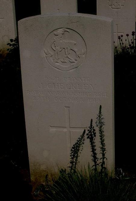 John was killed in action on 27 Oct 1914 when the battalion were in the front lines near Houplines. The war diary for the day states:"Enemy shelled C&D Coys trenches and sniped continously and opened with Maxims (Machine Guns) on them. Our guns shelled enemy's trenches and houses in vicinity. 6 killed (including John) 15 wounded, all caused by enfilade fire".