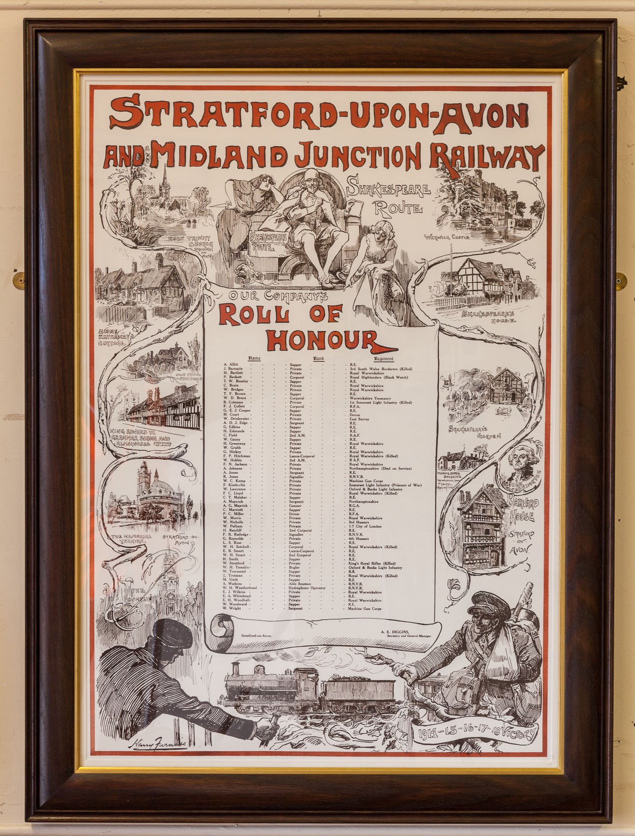 The Stratford and Midland Junction Railway Station closed in 1952 and the Roll of Honour is now located at the main railway station in Stratford on Avon. More Here.
