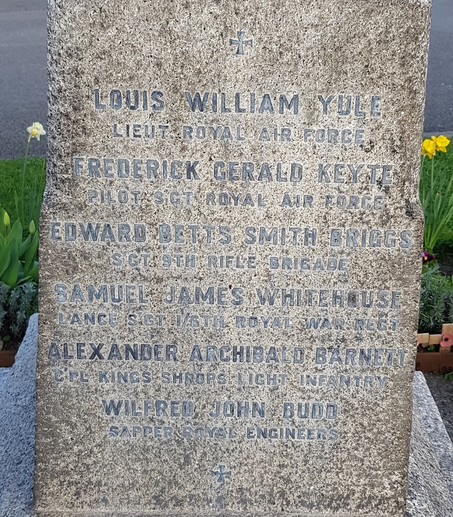 - Find A Grave and it's numerous contributors for use of photographs, particularly Grave stones. SWFHS supplies pictures of War Memorials to the site in the name of Ian Shuter.